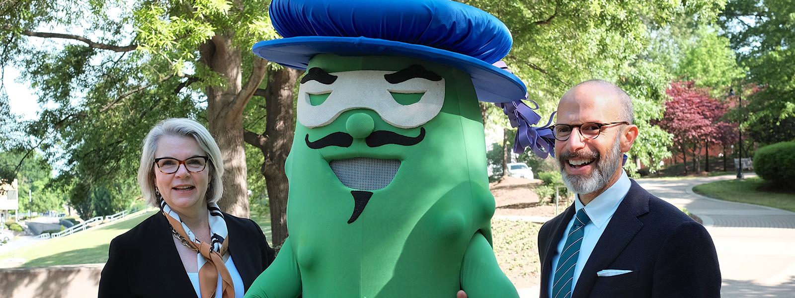 The original story of the Pickle mascot is alive and well in the University archives to enlighten and entertain. Presented to the archives in 1992 on the 20th anniversary of the second Homecoming weekend, the story tells of two humble music students who delighted their mates with a story of the best pickles in town and yielded up a now famous mascot for the young school. Enjoy!