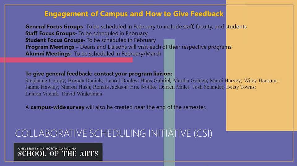 The Integrated Scheduling Initiative reimagines how UNCSA structures time to better support the way students learn and balance their artistic and academic work, with an aim of improving student wellness, balance and collaboration across disciplines.