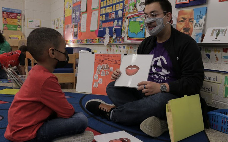 ArtistCorps provides arts-based service in under-resourced Title 1 schools and community centers as part of UNCSA's commitment to sparking a lifetime of creative thinking, innovative problem-solving, and powerful self-expression with our communities.