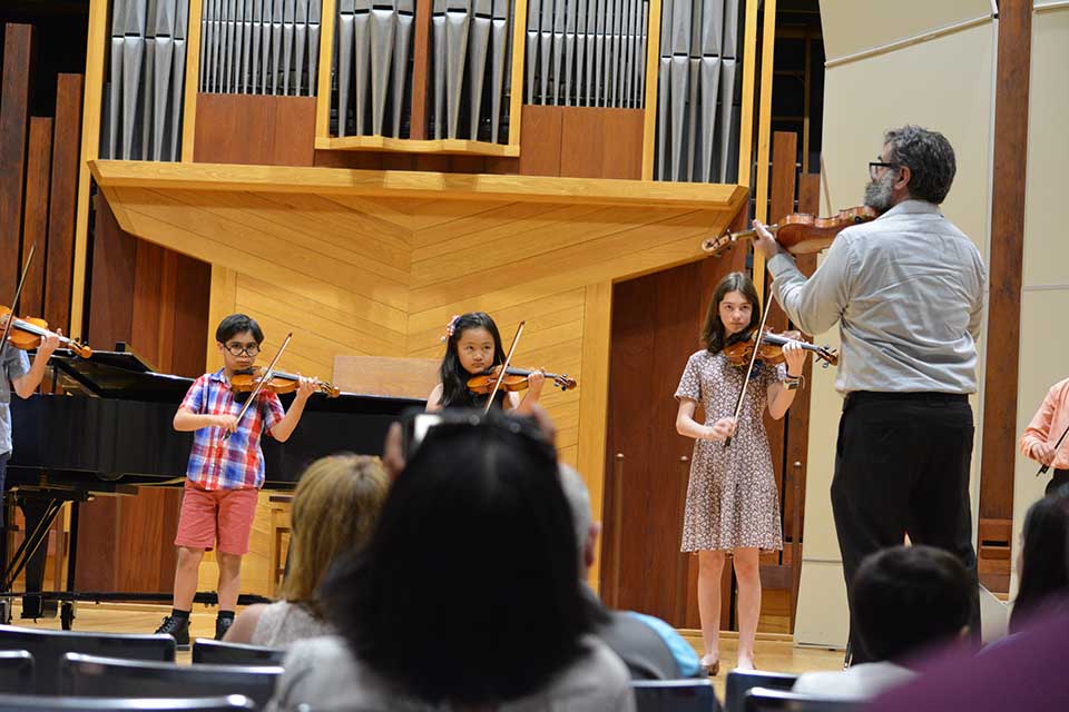 UNCSA Suzuki Strings features weekly private lessons in which one-on-one instruction involves the parent's observation and active participation. As a fundamental component of the Suzuki approach, group classes meet regularly throughout the school year. In the group setting, the students expand on their skills in a fun and challenging way along with their friends and peers. Group playing fosters ensemble skills, an environment of healthy competition, and peer encouragement as the young musician develops.