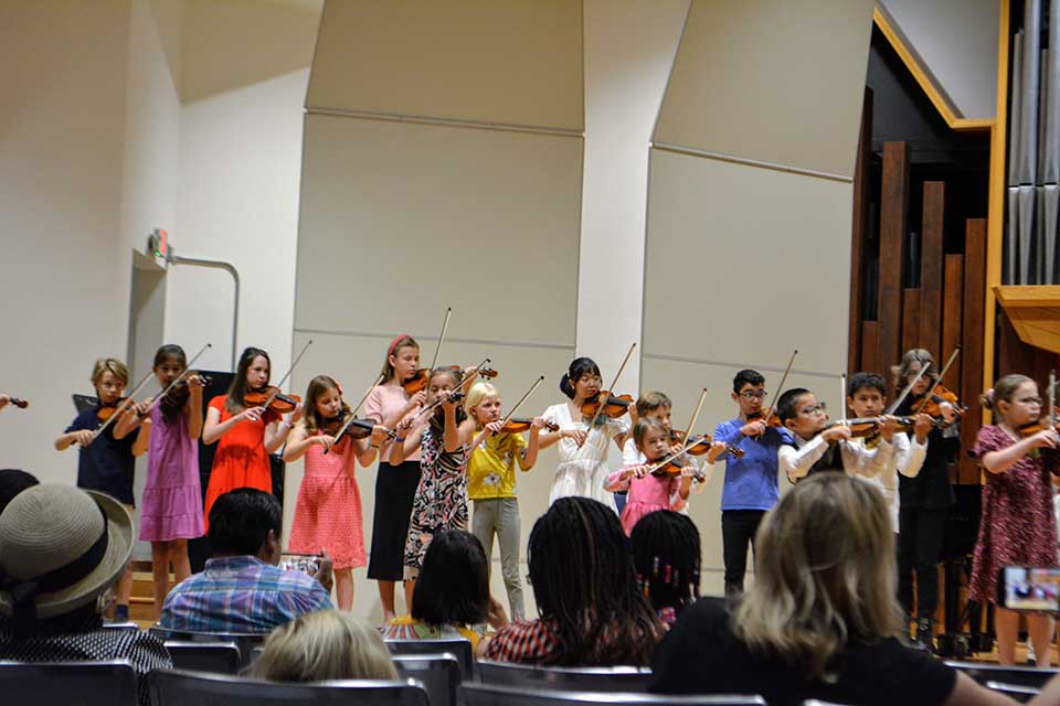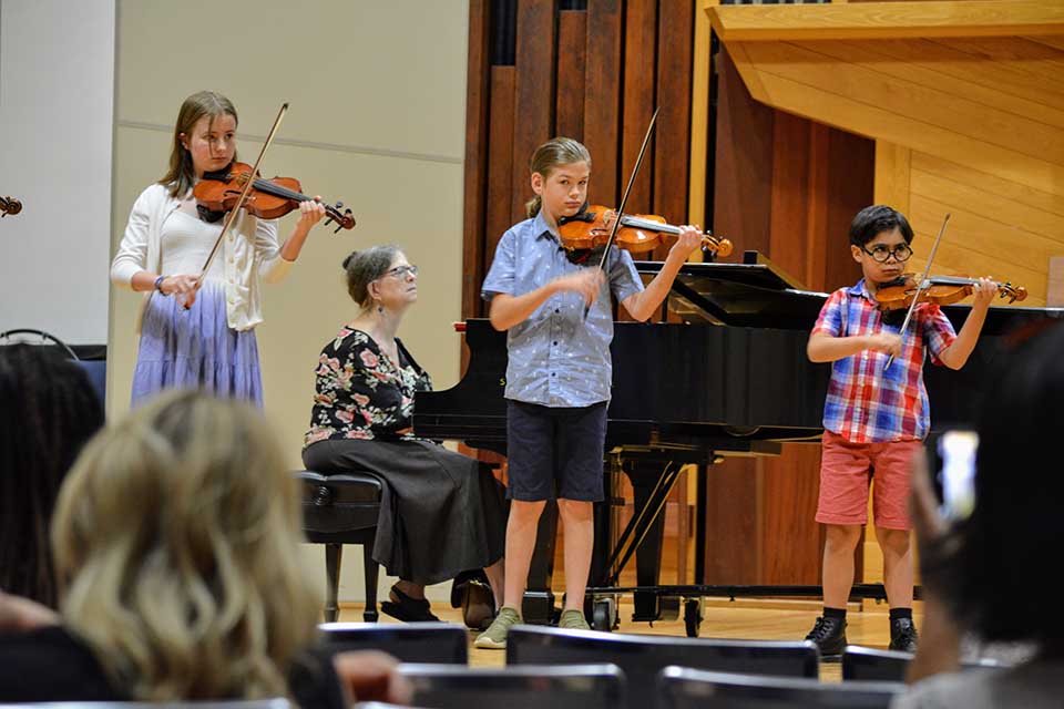 Suzuki Strings students participate in two solo recitals plus two group performances per year. In the solo recitals, every student performs an accomplished solo with a professional accompanist. At our group performances, the entire studio performs as a group, beginning with the most advanced pieces and walking through selections from the overall repertoire.
