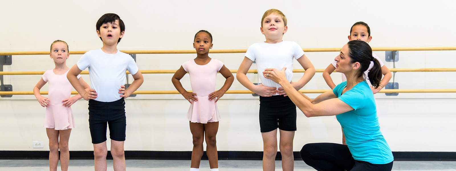 The Primary Division includes two years of Pre-Primary study for ages 3 and 4 and three years of Primary Ballet for ages 5 to 7. Instruction in Pre-Primary classes is creative movement centric as students build their love of dance through stretching, strengthening, and coordination building games and exercises.