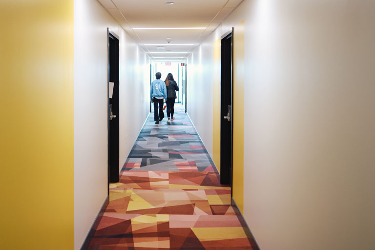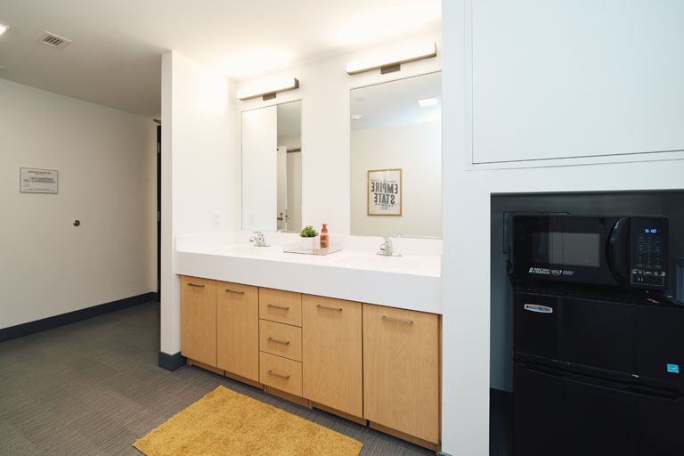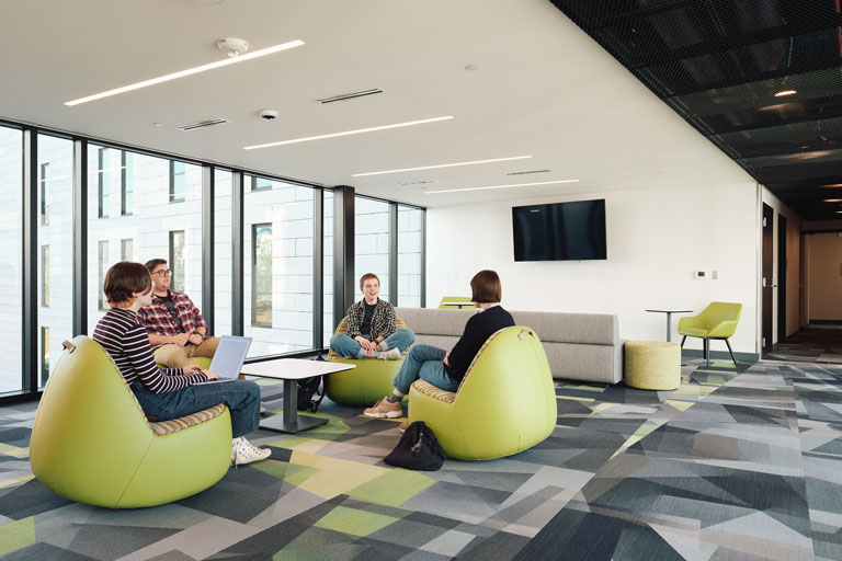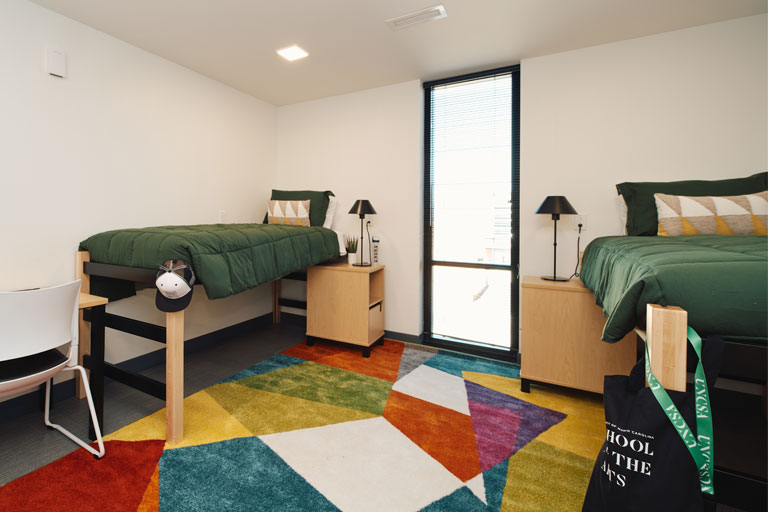 Artist Village opened in January 2022. It provides suite-style housing for approximately 450 students, offering two double or single rooms and a suite-shared bathroom space. It features multiple gaming areas, community lounges, community kitchens on the first and fifth floors, studies on each floor and a central laundry facility on the first floor.