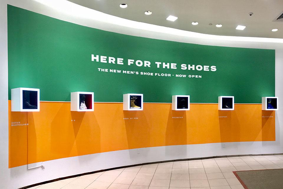 This past summer, I had the opportunity to generate and develop the creative for the launch of our new men's shoe floor. We were opening the largest men's shoe destination in North America and I was excited to lead the team through the logistics of the opening along with installation of multi-channel creative animation throughout the store.