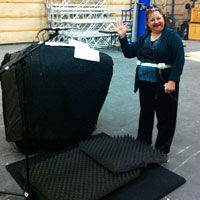 These recordings were made on March 8th, 2011 in Sound Stage 6 at the UNCSA Film School byMFA sound design students Eric Schwartz, Patrick Calhoun and Maggie Hall with faculty advisor Jason Romney. The microphones used were DPA 4061 (soft boost cap), Sennheiser MKE 1 (small cap), MKE 2 GOLD (short cap), Countryman B3 (flat cap, red band), Countryman B6 (flat cap, red band) and Earthworks M30 Omnidirectional at 3 feet away. Other hardware included a Shure UR1-M / UR4D wireless system and a Presonus Digimax FS preamp, via ADAT into MOTU 8-Pre , via firewire into a MacBook Pro using Logic Pro software to record the data. The audio files are formatted as WAV, 96 kHz / 24-bit.