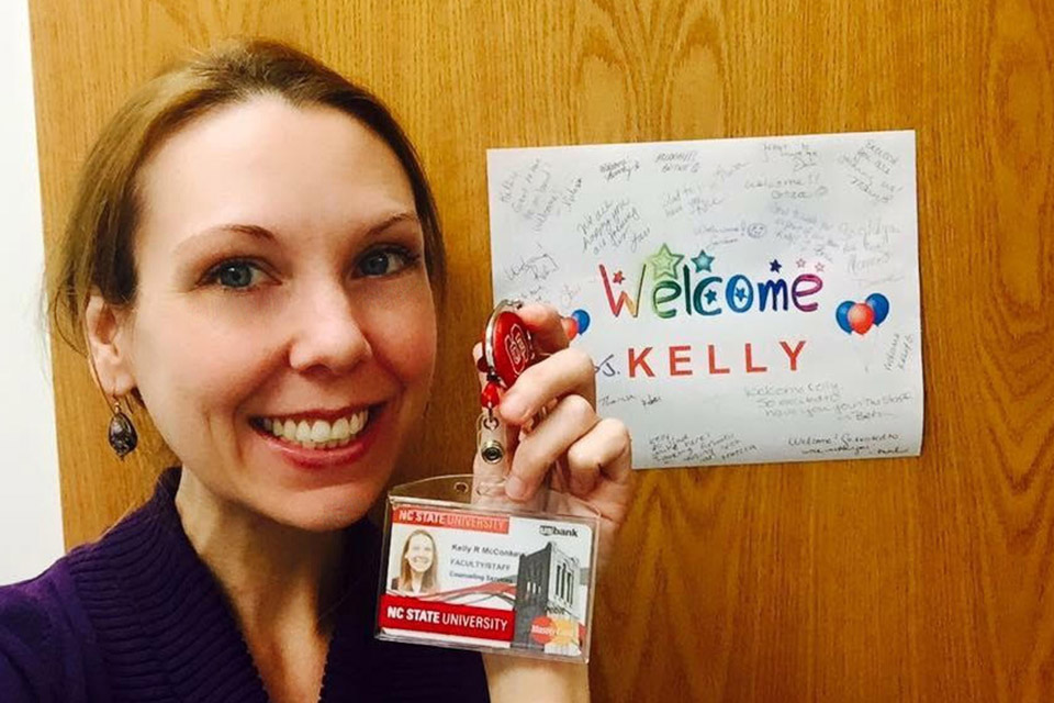 Kelly McConkey on her first day of work at North Carolina State University (NCSU).
