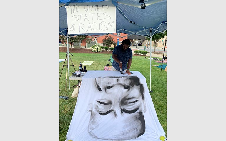 After the comment was made, Karen knew she had to speak up somehow. “What can we do that is not just talk?” Both Karen and her partner Robert have used their voices through art the majority of their lives, so they thought it would be beneficial to share their art with others. In 2019 they started the United States of Racism as an Instagram page. They selected this name since racism is everywhere. “The USOR is a collective of art and writing meant to educate people about the various states of racism and how it lives and moves in our society.” It is an activist grassroots organization that is in a rest period at the moment due to covid, but through their time of healing they will come back stronger in 2022.
