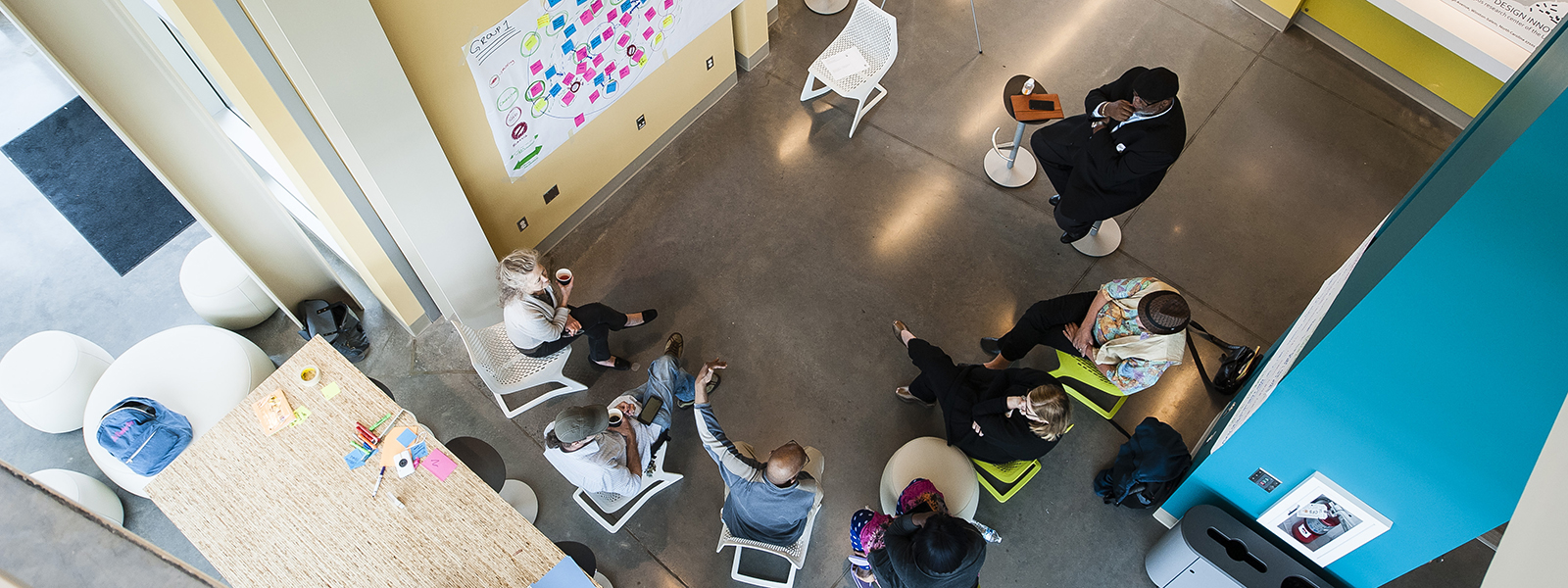 The Kresge funding can support the work of up to four clusters, which will develop and test prototypes of their interventions. Madden invited the groups to continue their work at the Kenan Institute’s new Creative Community Lab in the historic Railroad Building on South Liberty Street.
