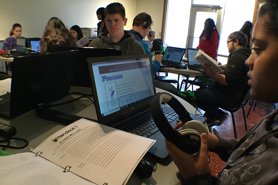 Students produce podcasts using laptops that The Dream School founder Tonya Sheffield purchased with funding provided by the Artpreneur Grant.