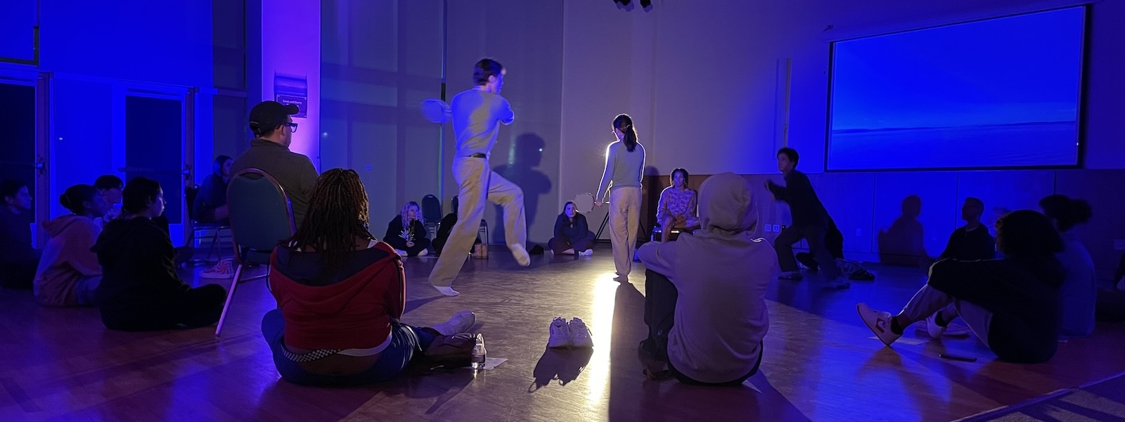 For this residency, Miller was on the UNCSA campus for five days this past September, dedicating time to speak about his work with all first-year seminar classes in addition to leading the devising process that culminated in the intimate presentation for members of the campus community. Participants in the workshop described the experience as revelatory and inspiring. Jayla Thacker, one of the four student performers from the School of Dance, explains that the workshop marked her first time working with text or dialogue. Thacker says that Miller’s thoughtful, careful approach to the process made her comfortable trying out that new mode of expression and also enabled her to delve into personal material in her piece. She observes that she hadn’t expected the workshop “to be that emotional, but I think that was also one of the best things to come out of it because it was very, very raw and very real.”