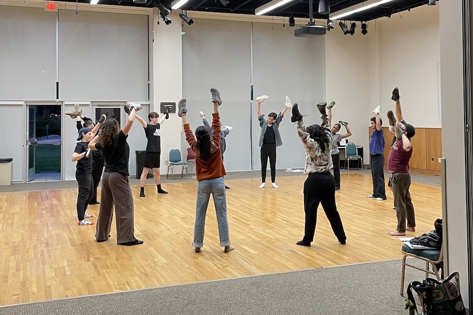 The final group of nine presented a series of original solo pieces that were deeply personal, amplifying the intimacy of the uniquely intimate art form of theater. That performance, titled “These are the shoes . . .,” featured eight students, half from UNCSA’s School of Drama (including one guest student from Wake Forest University) and half from the School of Dance, plus Drama faculty member Michael Alvarez. The dance students were Madison Wilson, Noah Braun, Jayla Thacker and Abi Gooch; the drama students were Hannah Szemereta, Matías Kruse, Liwen Zhang (of Wake Forest) and Jake Bryant.
