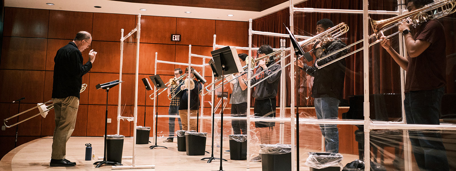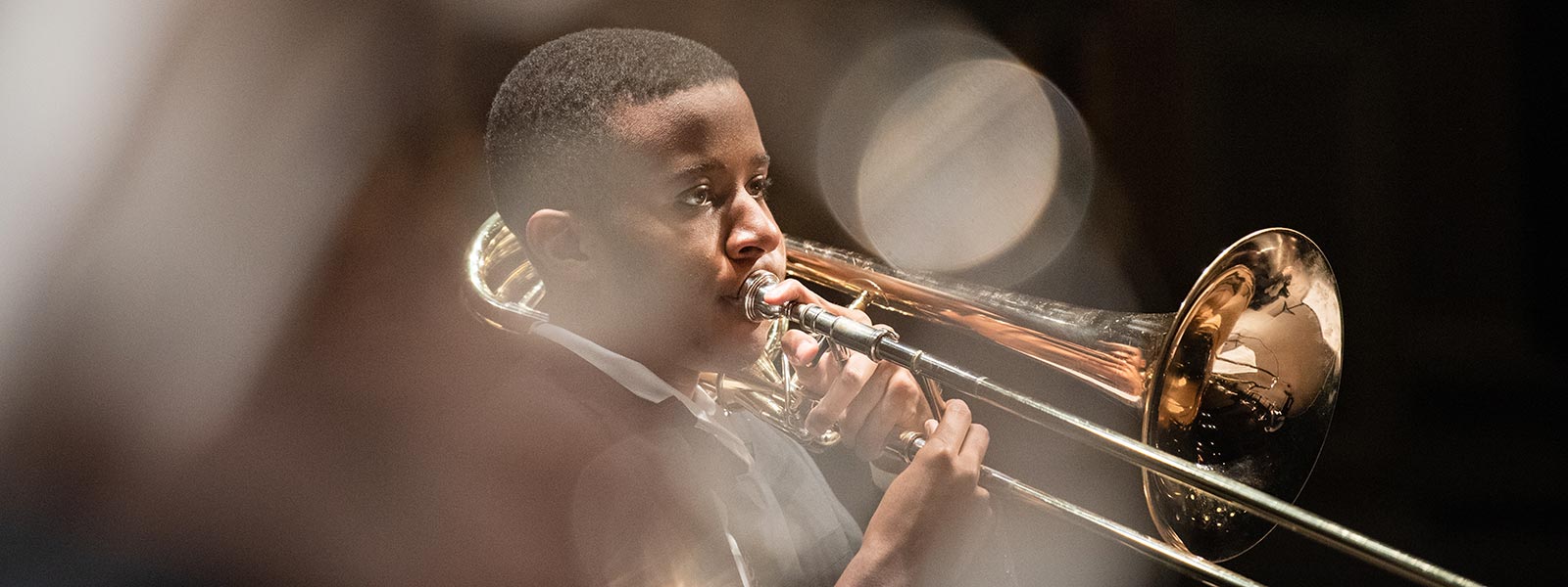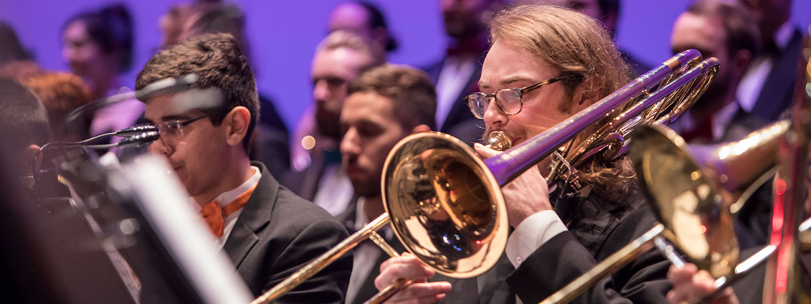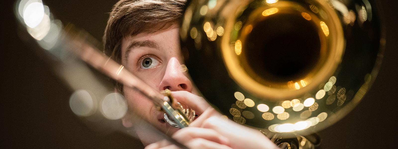 As a student in the undergraduate trombone program, you will receive private lessons from faculty members who are also active musicians in all genres, giving you exposure to a wide range of playing styles, music and experiences. Your weekly studio master classes will give you the chance to perform in front of your peers, allowing you to learn – from your own performance as well as your colleagues’ – how to both give and receive critical feedback. Your performance opportunities include large and chamber ensembles on campus. Appearances in community schools, retirement homes and other non-traditional performance spaces will give you the chance to advocate for your craft and the arts. And being on an arts campus with other disciplines means plenty of collaborative projects with dance, drama and film.