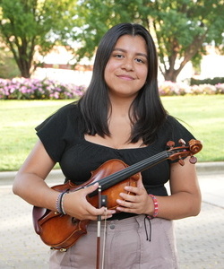 Sara Krank is a college freshman from Albuquerque, New Mexico. She had her first, somewhat occasional, violin lessons at age 6. After joining her middle school’s orchestra, her sense of connection with the instrument grew, and she began regular study with Julanie Lee. During all four years of high school she placed into her state’s renowned La Cueva Camerata Orchestra as well as NMMEA’s All-State Symphony Orchestra, and she participated in the Albuquerque Youth Symphony, the AYS Chamber Program and in Honors District Orchestras. In her junior and senior years of high school she also performed with Opera Southwest and the New Mexico Philharmonic. Sara won the Maestro Award from the World Strides Anaheim Heritage Festival in her junior year. With her passion for chamber music, her self-directed quintet consistently earned the highest honors at her state’s Solo and Ensemble Festival. In 2022, she participated in the UNM Summer Music Institute, playing in master classes given by Alejandro Drago and Cármelo de los Santos, and she traveled to Rochester, NY, to participate in the Summer Classical Studies Program at the Eastman School of Music as a student of Wilfredo Degláns. Last summer she participated in the Austria Summer Music Festival in Weyer, Austria, working with Burghard Tölke. She is excited to continue her musical journey and to refine her skills at UNCSA working with Professor Lawrence.