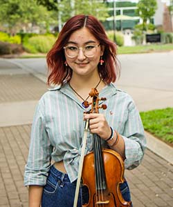Currently a first-year master’s student from Cincinnati, Ohio, Kennedy Graves received her undergraduate degree in violin performance from University of North Carolina School of Arts studying with Kevin Lawrence. She discovered the violin and began playing the instrument at the age of 3, initially studying with UNCSA alumna Diana LeGrand. During her elementary years she participated in numerous Suzuki violin summer programs in Virginia, working with several different violin instructors. When she was accepted into Cincinnati’s School for Creative and Performing Arts in the eighth grade, she resumed private lessons with Ms. LeGrand. She participated in the Ohio Music Education Association’s annual competition, earning the highest rating each year for five consecutive years, won the prestigious Corbett Mayerson Competition, and served as the concertmaster of the state ranked SCPA Chamber Orchestra. She recently toured the Virginia, Maryland and Washington, D.C. region as a member of the Pan American Chamber Orchestra, performing with Ms. LeGrand. Kennedy has greatly enjoyed playing chamber music as a member of several string quartets over the past several years. She has performed in master classes given by Midori Gotō, Hillary Hahn, Axel Strauss and Grace Park. During the summer of 2023, she attended the Branceleoni International Music Festival in Piobicco, Italy performing chamber music and attending private lessons and master classes. She is grateful to all of the violin teachers who have helped shape her musical growth.