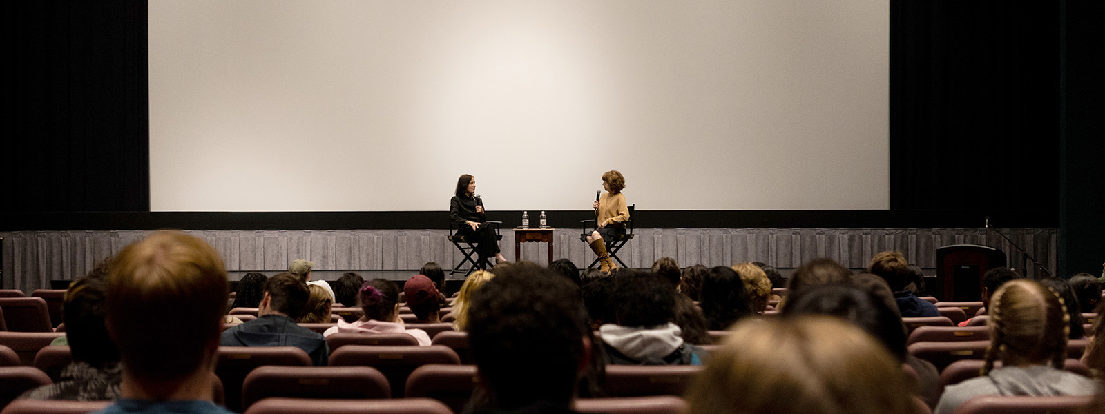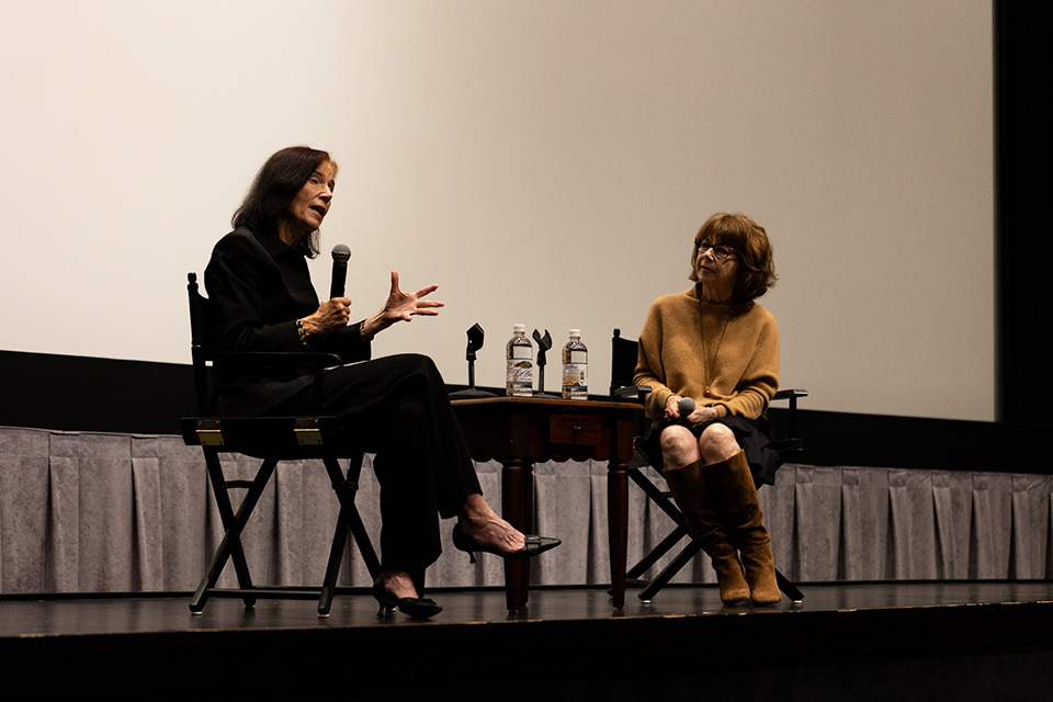 Guest artist Linda Woolverton in coversation with Dean Deborah LaVine. / Photo: Shelby Lail