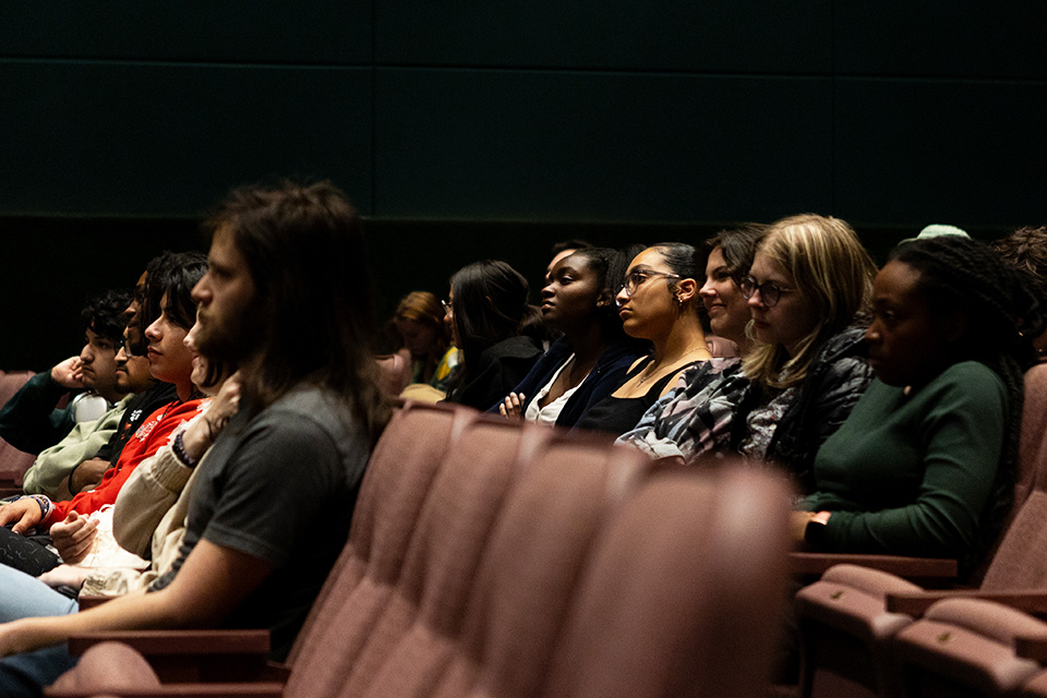 Students listening to Woolverton and LaVine discuss the film industry and Woolverton's extensive career. / Photo Shelby Lail