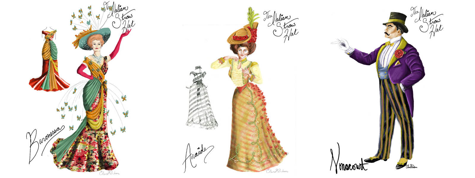 Set in Paris in 1913, the opera plot revolves around a bridegroom, Fadinard (performed by Simon Petersson, tenor), and his frantic wedding preparations. Racing around in his horse-drawn carriage, he snags a tree limb with his whip. While Fadinard retrieves the whip, his horse snacks on a lady’s straw hat, left hanging on a bush while its owner, Anaide (performed by Jenny Schuler, soprano), engages in a tryst with her lover. Philandering Anaide dare not tell her brutally jealous husband, who bought the hat made in Florence, Italy. Anaide and her lover, Emilio (performed by Cody Montá, baritone), confront Fadinard and demand that the hat be replaced.
