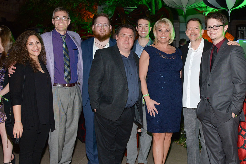 UNCSA was well-represented at the One Night for One Drop show and after party. From left, alumna Kim Ross, Board of Trustees Chair Michael Tiemann, One Drop fellow Dustin Vandenberg, D&P Dean Michael Kelley, Executive Vice Chancellor and Provost David English, Cirque du Soleil's Kim Scott, Vice Provost and Dean of Student Affairs Ward Caldwell and One Drop fellow Josh Sheldon.