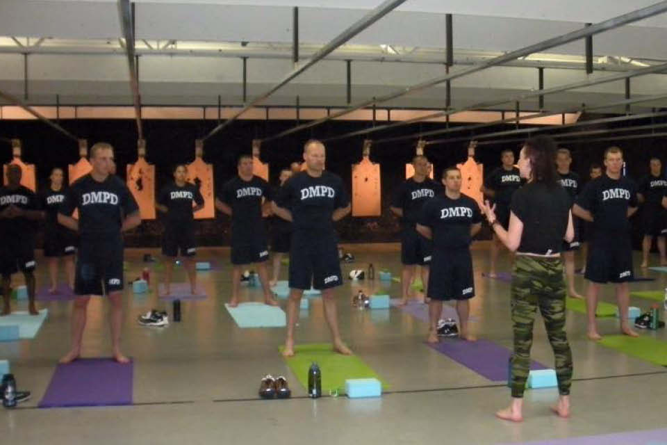 Olivia Mead instructs a yoga class for Des Moines Police Department.