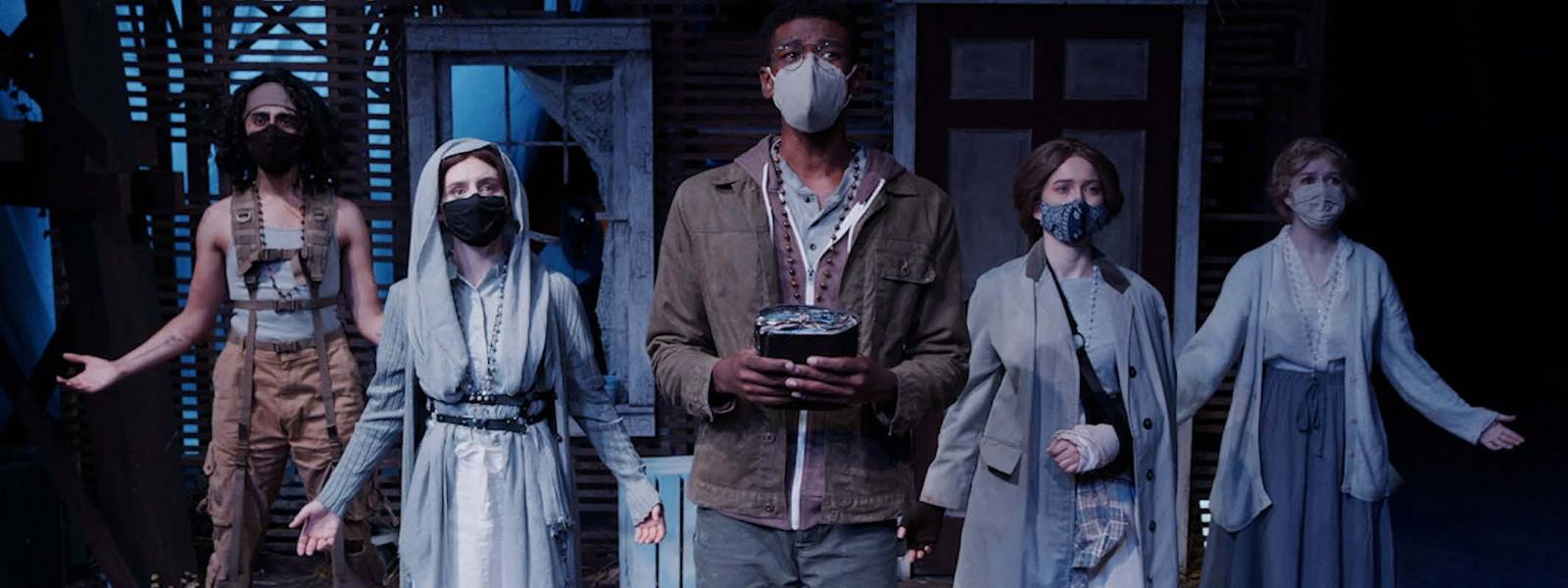 With support from the School of Design and Production, both plays were filmed live in Hanesbrands Theatre during the fall semester using protocols adopted by professional theater organizations to perform safely during the COVID-19 pandemic.