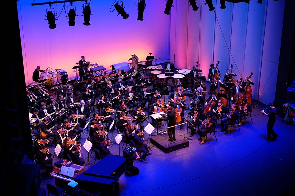 The UNCSA Symphony rehearses at the Stevens Center for a 2016 Collage concert. / Photo: Ken Bennett