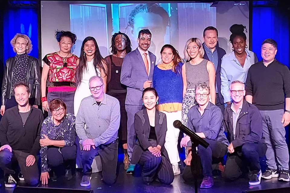 1/52 Project recipients, committee members, and funders, back row: Natasha Katz, Anita Yavitch, Jessica Cancino, Jordan McCree, Frank Cazares, Everett Elton Bradman, Stefania Bulbarella, Jingyi Johanna Pan, Alejo Vietti, Dede Ayite, Wilsion Chin Front row: Jeff Croiter, Wendell Harrington, Ken Posner, guest, Beouwlf Boritt, Nevin Steinberg / Photo: Beowulf Boritt