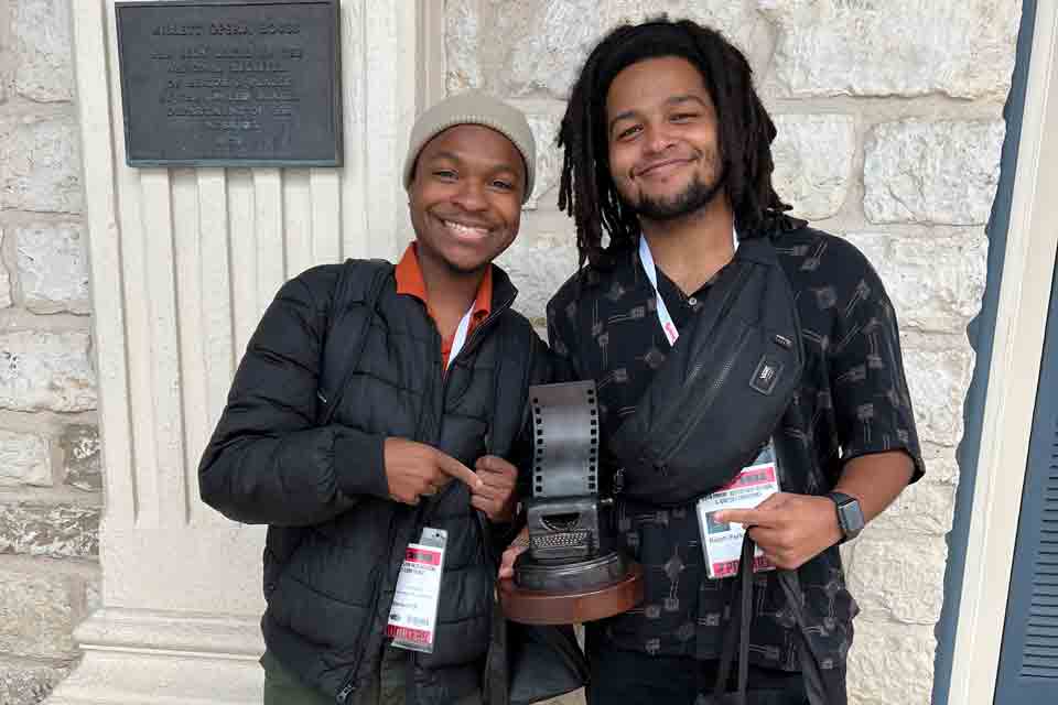 “Sammy, without Strings,” a student film from the School of Filmmaking, has won the best narrative student short award and had its world premiere in competition at the Austin Film Festival, Oct. 27 through Nov. 3. It is the first time a UNCSA film won an award in this category at the Austin Film Festival. The project is also competing at the EnergaCAMERIMAGE International Film Festival in the film and art school etudes category, Nov. 12 through 19, 2022, in Toruń, Poland. Earlier this year, it was the first East Coast film school project to be represented at Creative Artists Agency’s Moebius Film Festival.