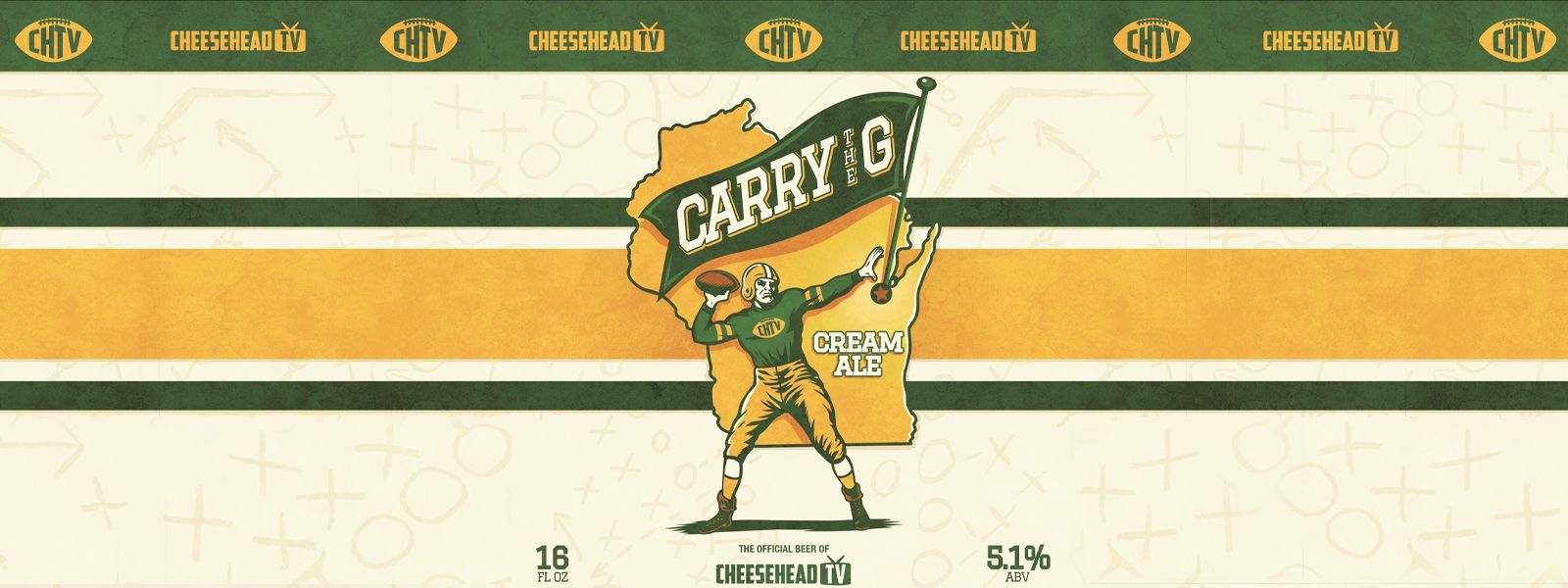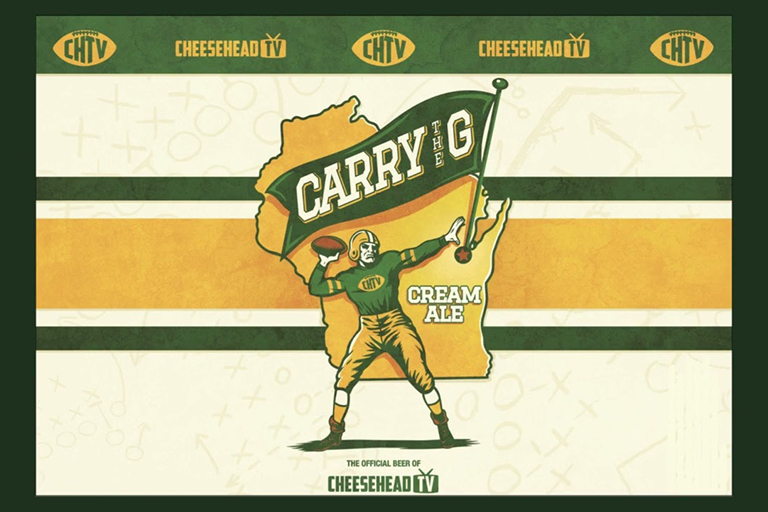 Cheesehead TV and Gathering Place Brewing's "Carry the G" beer logo.
