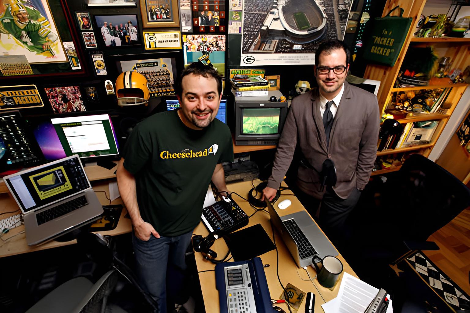 But Nagler still needed a creative outlet. He began blogging about the Packers, writing just for himself under the title “Aaron Nagler’s Football Report.” Until one week, in 2007, Behnke had an idea. “Let’s do a podcast,” he said. Despite Nagler’s initial response of, “What’s a podcast,” the idea clicked, and “Packers Transplants” was born: a weekly podcast covering all the latest on the Green Bay Packers. The friends created the website Cheesehead TV to house the podcast and additional content.