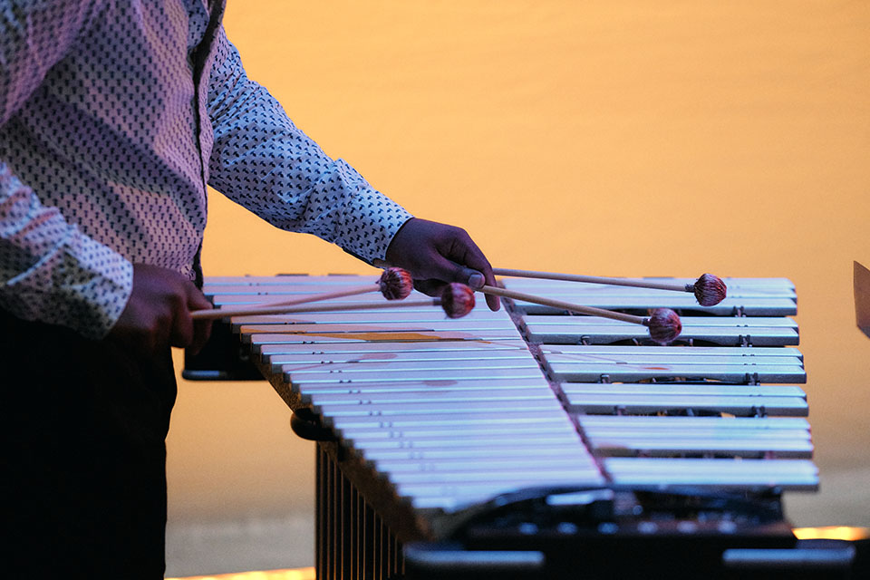 Percussion student performing at the 2022 Jazz Ensemble concert featuring Jon Metzger. / Photo: Wayne Reich