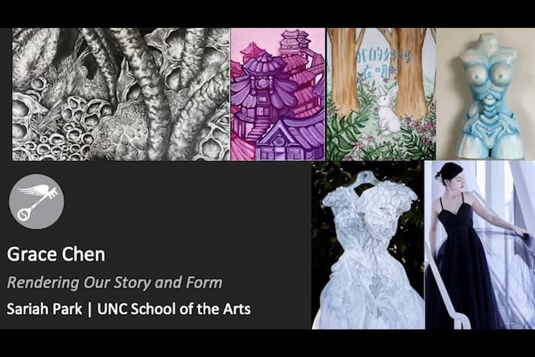 Seventeen students in the high school Visual Arts Program at UNCSA have won 29 awards in the 2023 Mid-Carolina Scholastic Art Awards. The students collected eight Gold Keys, nine Silver Keys, and 12 Honorable Mentions. Serving students and educators from central North and South Carolina, the Mid-Carolina Scholastic Art Awards are hosted by the College of Arts + Architecture at UNC Charlotte. The ceremony for regional Gold and Silver Key awards was held virtually on Feb. 11, 2023. The national awards will be announced in March.