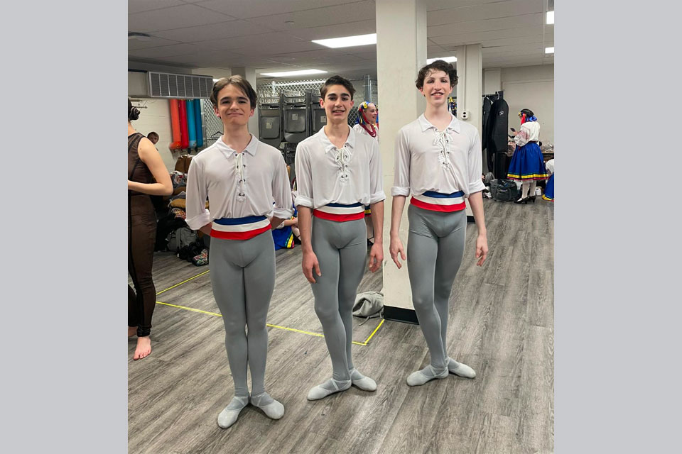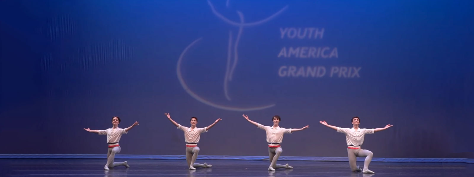 At the YAGP Finals, high school sophomore Will Gyves, junior Jett Lecamu, junior Jacob Duehring and junior Julian Pecoraro won first place in the small ensembles category, performing “Flames of Paris Pas de Quatre.”