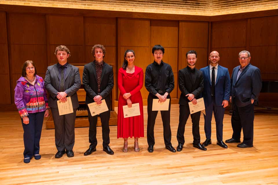 Rising third-year student Carter Doolittle, a saxophonist from Inman, South Carolina, won first prize; rising fourth-year student Gabriel Lopez, a saxophonist from Clayton, North Carolina, won second prize; and A.J. Fletcher Opera Institute fellow Kevin Spooner, a baritone from Oneida, New York, won third place. The winners were among six finalists who competed to take top prizes.