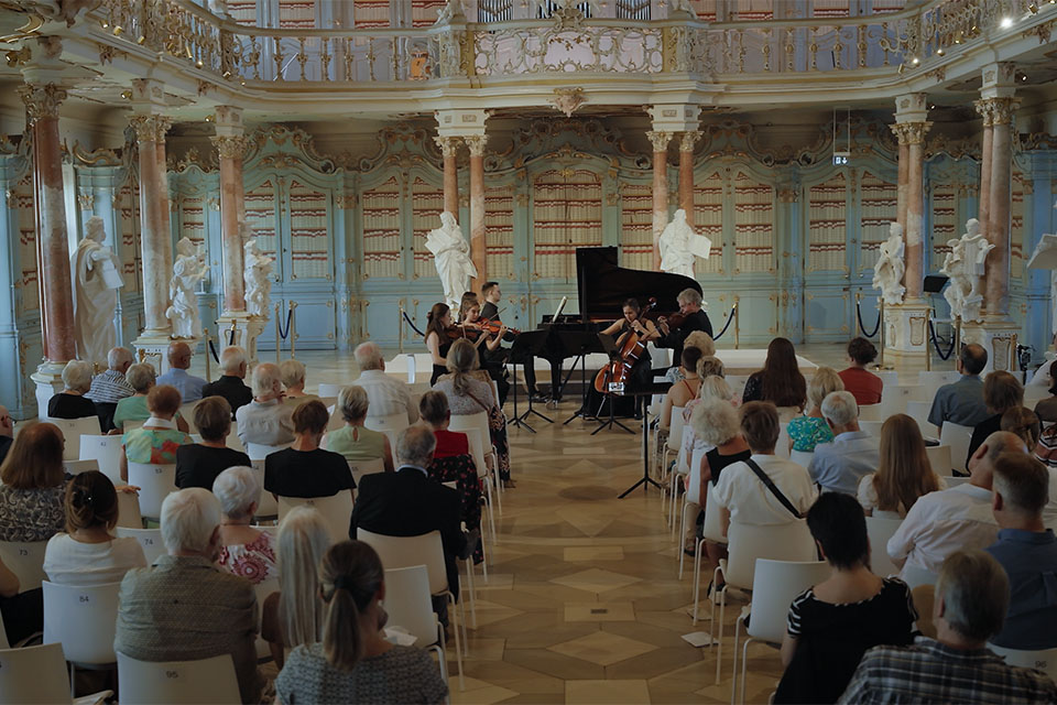 Students performing as part of the International Chamber Music Academy of Southern Germany at Landesakademie in Ochsenhausen, Germany.
