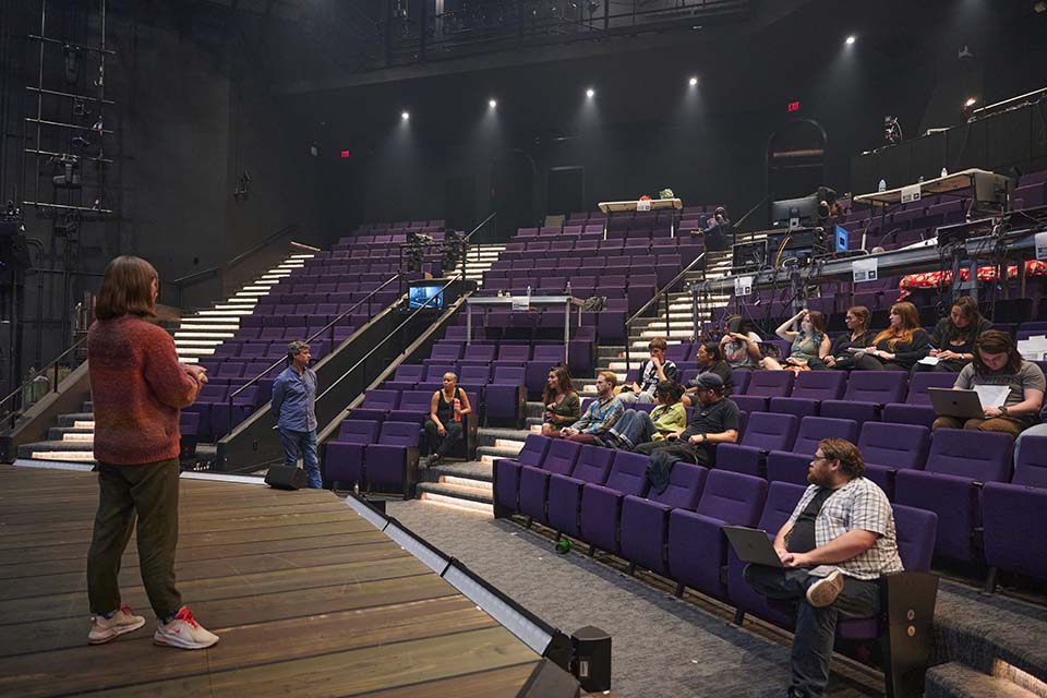 While Yeatts pulls from her artistic knowledge and classwork, she also heavily leans on her communication and interpersonal skills as a production manager. “What I am most proud of is the effort I put into building relationships with designers, technicians, artists and faculty across campus so that people know they can trust me in the production process,” she says. “I make sure everyone I work with knows that I can see things from their perspective, and I will do my best to communicate their wants and needs.”
