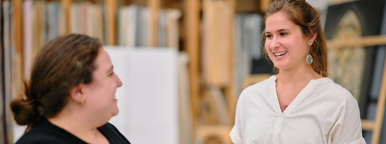 Yeatts refers to her work with the library as “the most pleasant surprise” of her time at UNCSA. It was at a virtual open house that Yeatts first learned about opportunities for graduate students at the library from University Librarian Sarah Falls. “She explained that she was hiring graduate assistants,” she remembers. “I emailed her immediately and luckily was hired.”
