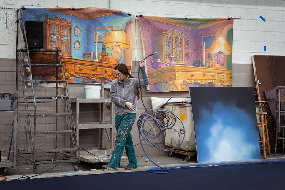 Crabtree says there is no common path that leads to a career in scenic art. “It is a surprise for almost everybody,” she says. A lifelong artist, she found her calling in college.