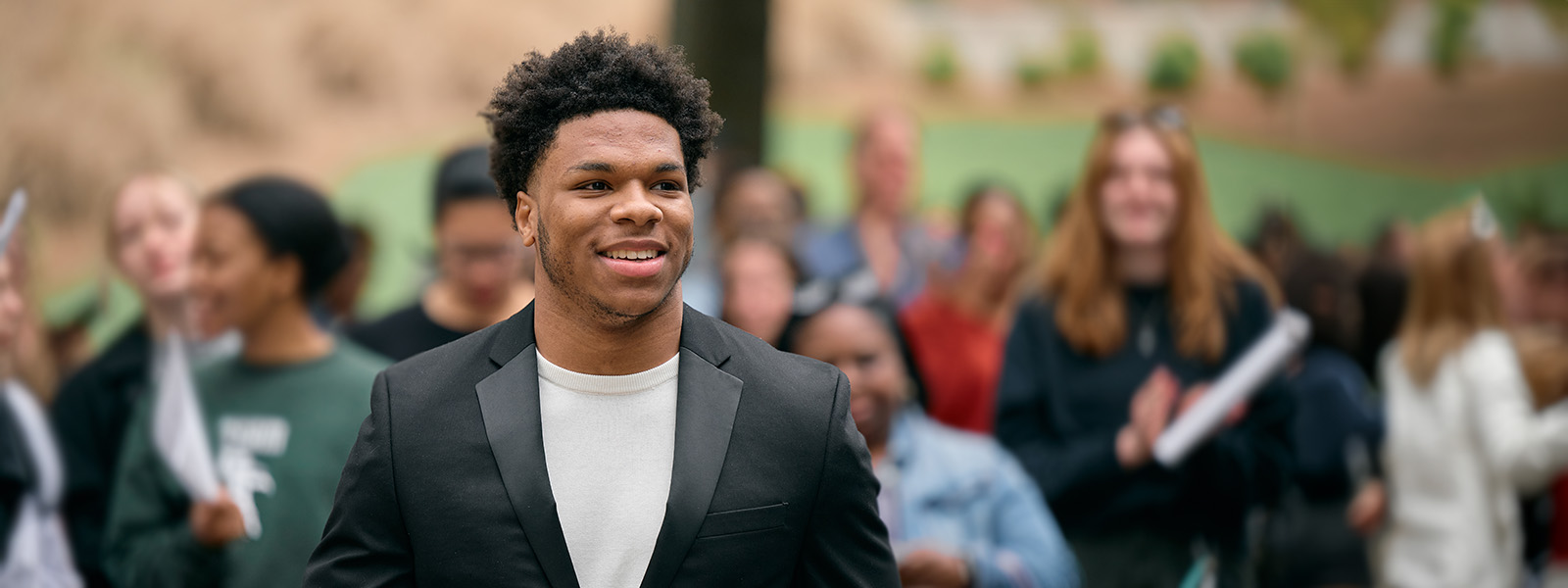 Outside of classes, Hardy has built a strong community with his classmates. As a peer leader, he’s been active in hosting events like flag football, basketball and dodgeball games. While some of his favorite memories are from big events like the waterslide at Beaux Arts, he has also just loved walking around campus, going to the gym with friends, and watching the sunset from that perfect spot near the School of Design & Production.