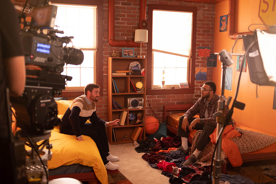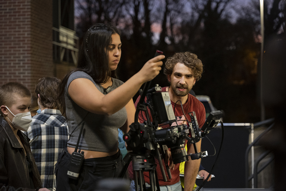 Drama and Filmmaking students on set of Fourth Year thesis film "Sideways," Fall 2019. / Photo: Hailey Cheyenne Port