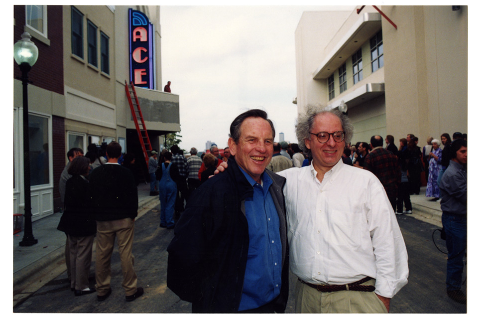 Former Chancellor Alex C. Ewing (left) and School of Filmmaking founding Dean Sam Grogg (right) at the ACE Theatre Dedication, Oct. 25, 1997 / Photo courtesy of the UNCSA Archives