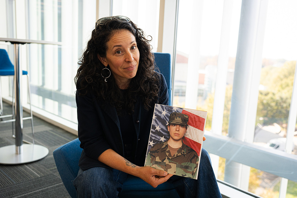 Bethany Kibler with a photo of her from her early days in the U.S. Army. / Photo: Rugile Zemaityte