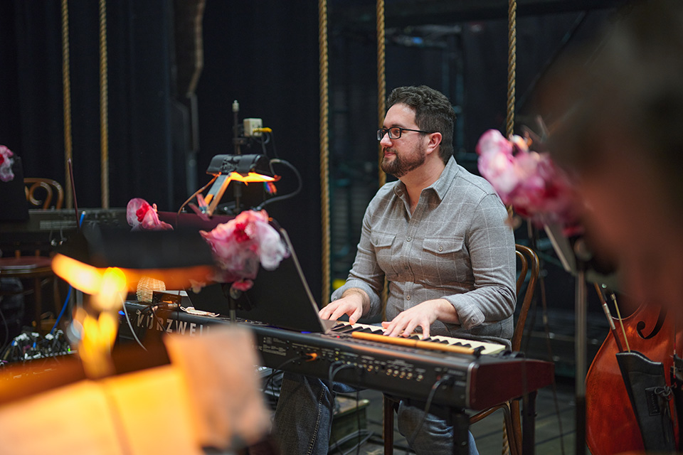 Faculty member and alumnus Chris Heckman performing live for the 2023 Drama production of "As You Like It." / Photo: Wayne Reich