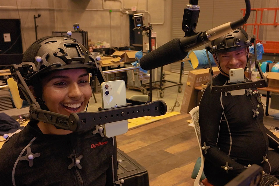 Actors Sanchi Pandey and Corey Lee Peña in full motion capture gear/ Photo courtesy of Erwick D'Souza and Dimitri Dyó.