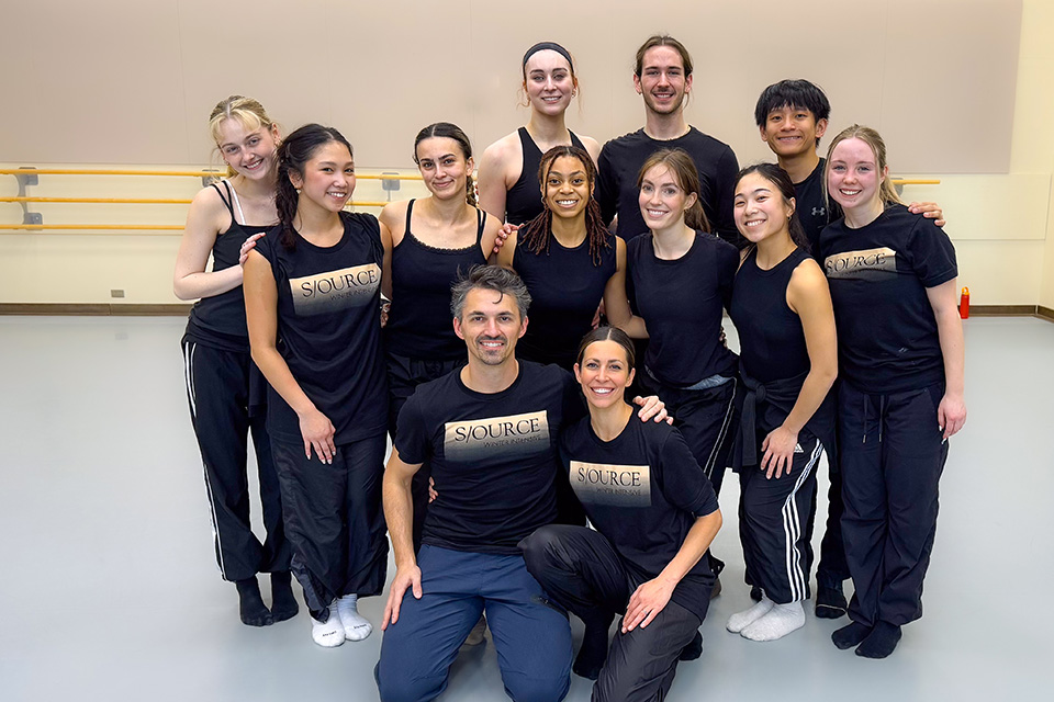 Alumna Mari Meade (B.F.A. Dance ’09, HS Dance ’06) and ballet faculty member Angelina Sansone first created a connection between Stewart and Owen and the School of Dance. Stewart taught during the Choreographic Institute and summer intensives before they began to lay the groundwork for S/OURCE. “It’s really a story of relationships, and it’s something we always return to,” explains Owen. “The company you keep is so important to your professional work, for everyone—but especially for dancers. We talk to students a lot about how key relationships are.”