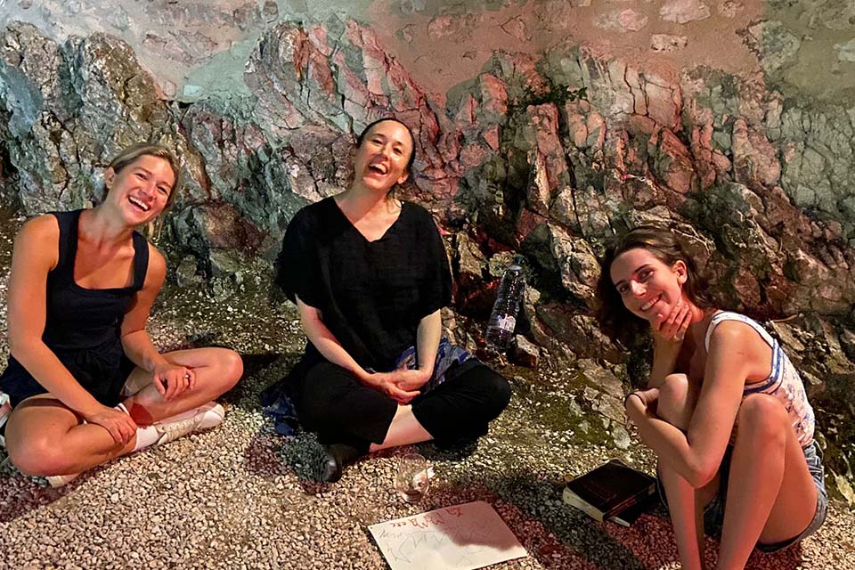Holland has also embraced the opportunity to continue collaborating with La MaMa peers through a series of readings hosted at La MaMa NYC — an event organized annually for summer symposium participants. “I showcased a draft of the project I began developing in Umbria,” says Holland of her adaptation of Anton Chekhov’s “Three Sisters.” Holland’s piece was read by eight actors — a mix of new faces and frequent collaborators, including Kate Pittard (B.F.A. Drama ’20) and Pat “Rooster” Monaghan (B.F.A. Drama ’20). “It was affirming to hear it read out loud,” she says, and it has allowed her to bring fresh material into her next draft. “One of the actors had a great note about one of the characters,” she recalls. “It was so much better than what I had conceived. I’m now editing and revising while keeping that detail in mind.”