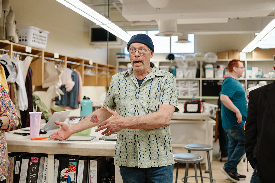Brewer giving a tour of the UNCSA Costume Shop. / Photo: Jen Scheib