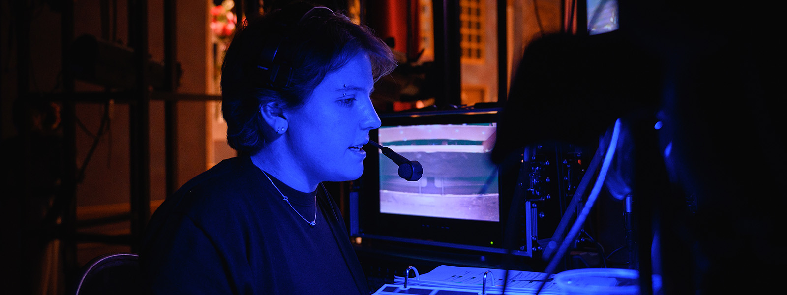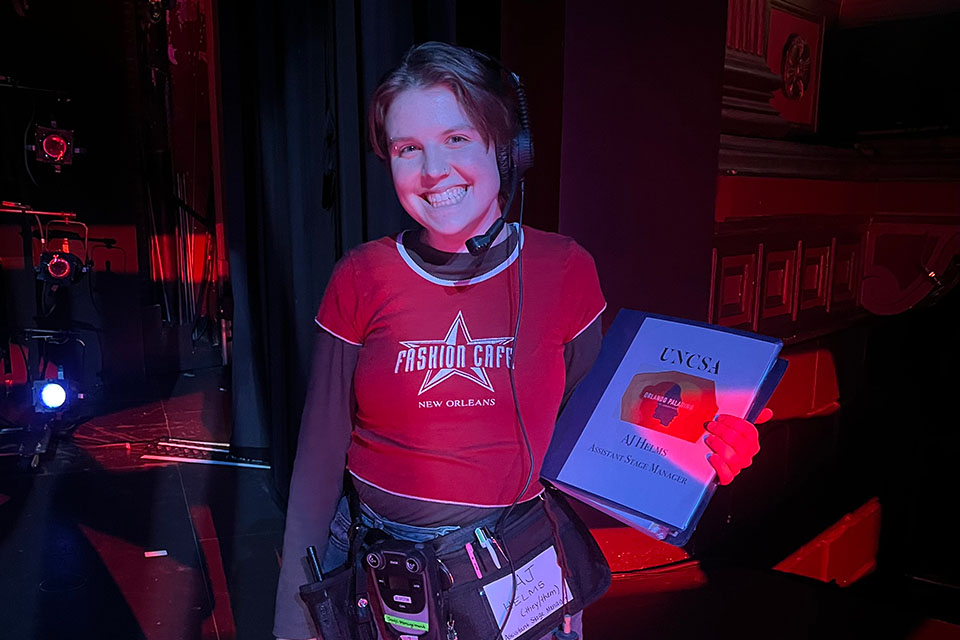 A native of Raleigh, North Carolina, Helms immersed themself in tech theatre throughout high school. “I stage managed all throughout high school and never turned back” they say. As a student with a growing passion for backstage work, UNCSA quickly stood out. “Being from North Carolina, I had always heard of UNCSA, and after researching their Stage Management concentration it became my dream school.”