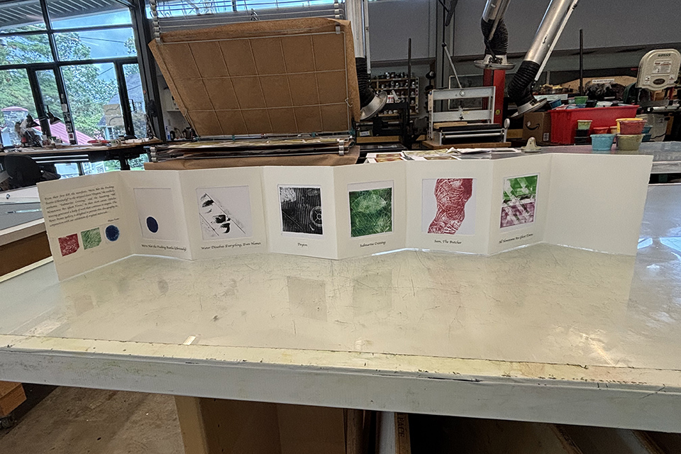 Joe Mills' work from a printmaking workshop with Susan Webster and Stuart Kestenbaum.