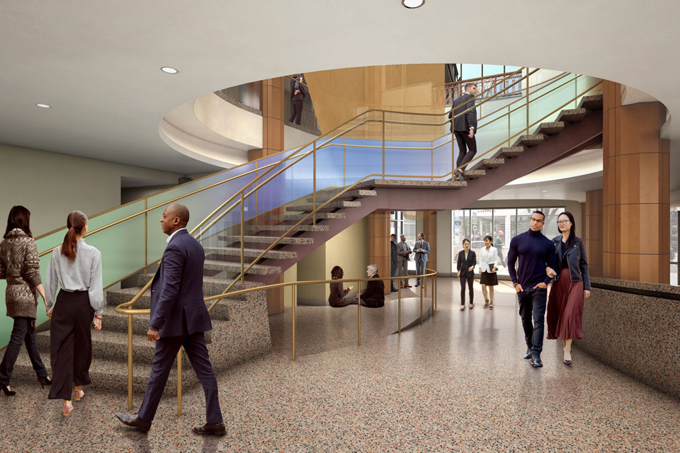 Conceptual rendering of the Stevens Center Lobby, Phase 1. Little Diversified Architectural Consulting/UNC School of the Arts