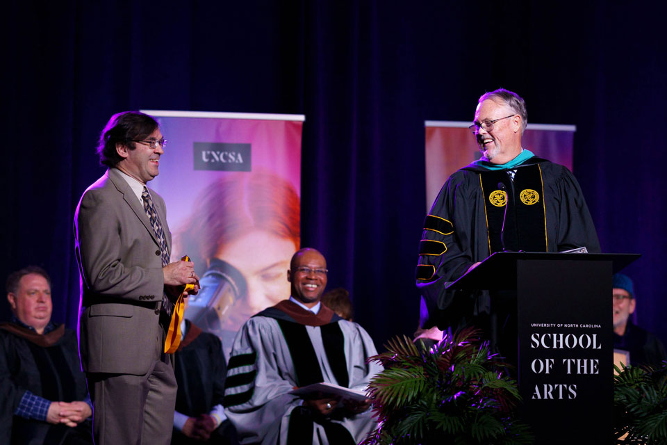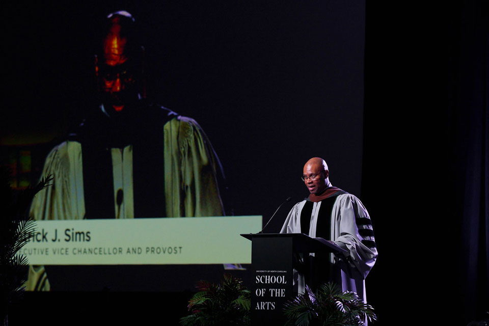 Executive Vice Chancellor and Provost Patrick J. Sims led the ceremonies in Cole’s stead. “Change is one of the few constants we know in life — and you’ve already demonstrated great courage in making a change for the better when you chose UNCSA as the foundation to your artistic journey,” Sims said in his closing remarks.